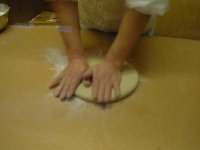 手での延ばしはこの程度まで できるだけ丸く仕上げておきます。 |