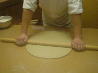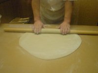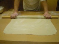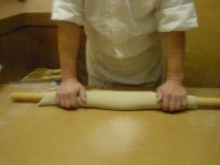 のし棒を使うときは手早さと 力加減が重要。 慎重になりすぎると生地が乾いて しまいます。 |