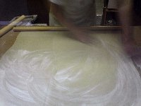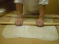 当店では喉越しを楽しんでいただくため 仕上げにもう1本ののし棒を使い、 さらに薄い生地に仕上げています。 |